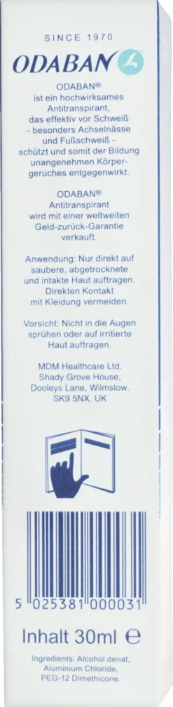 Aus ca. 15 cm Entfernung unter die Achseln sprühen.