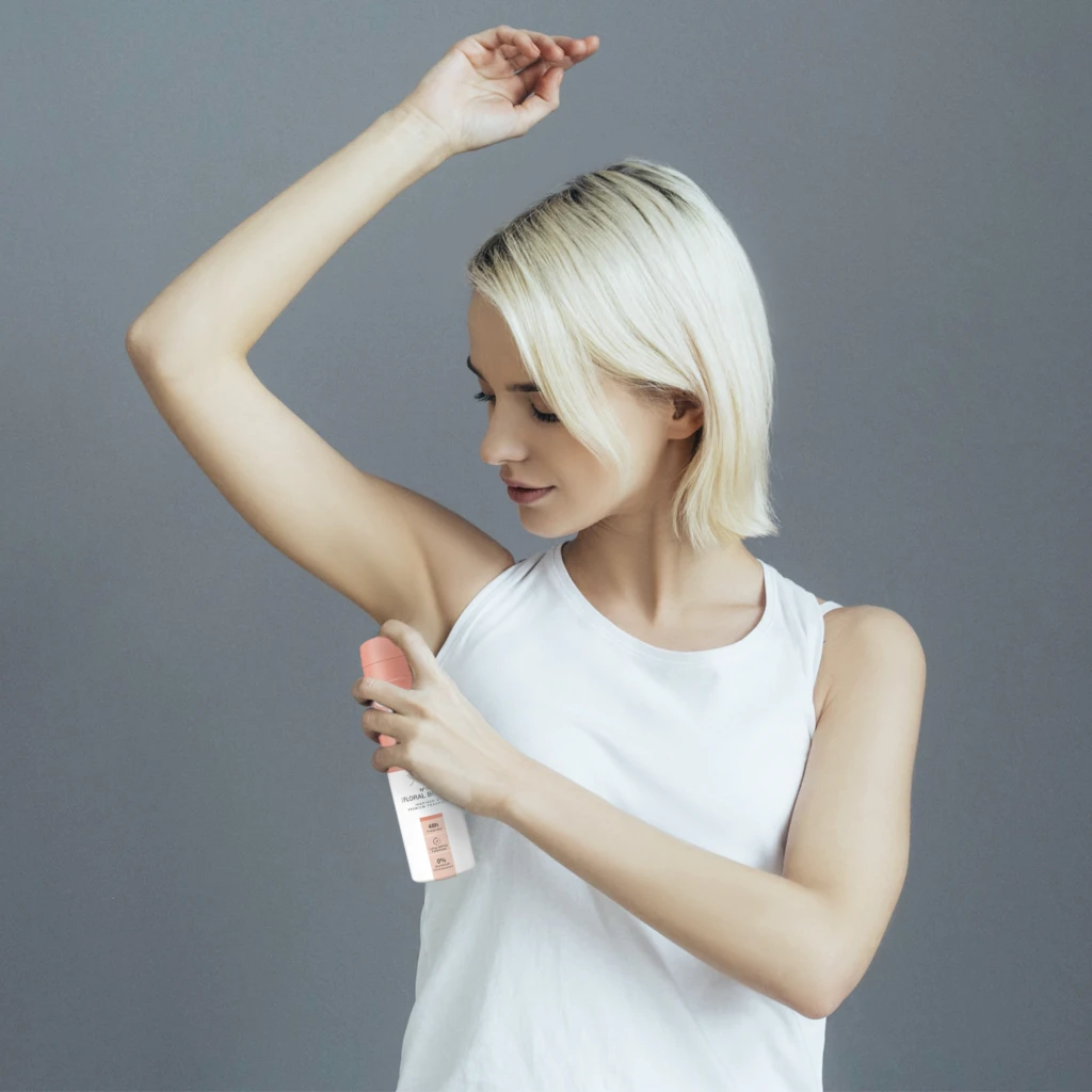 Aus ca. 15 cm Entfernung unter die Achseln sprühen.