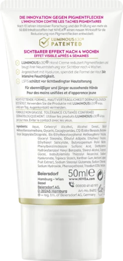 NIVEA Luminous Anti-Pigmentflecken Hochwirksame Hand Creme LSF15